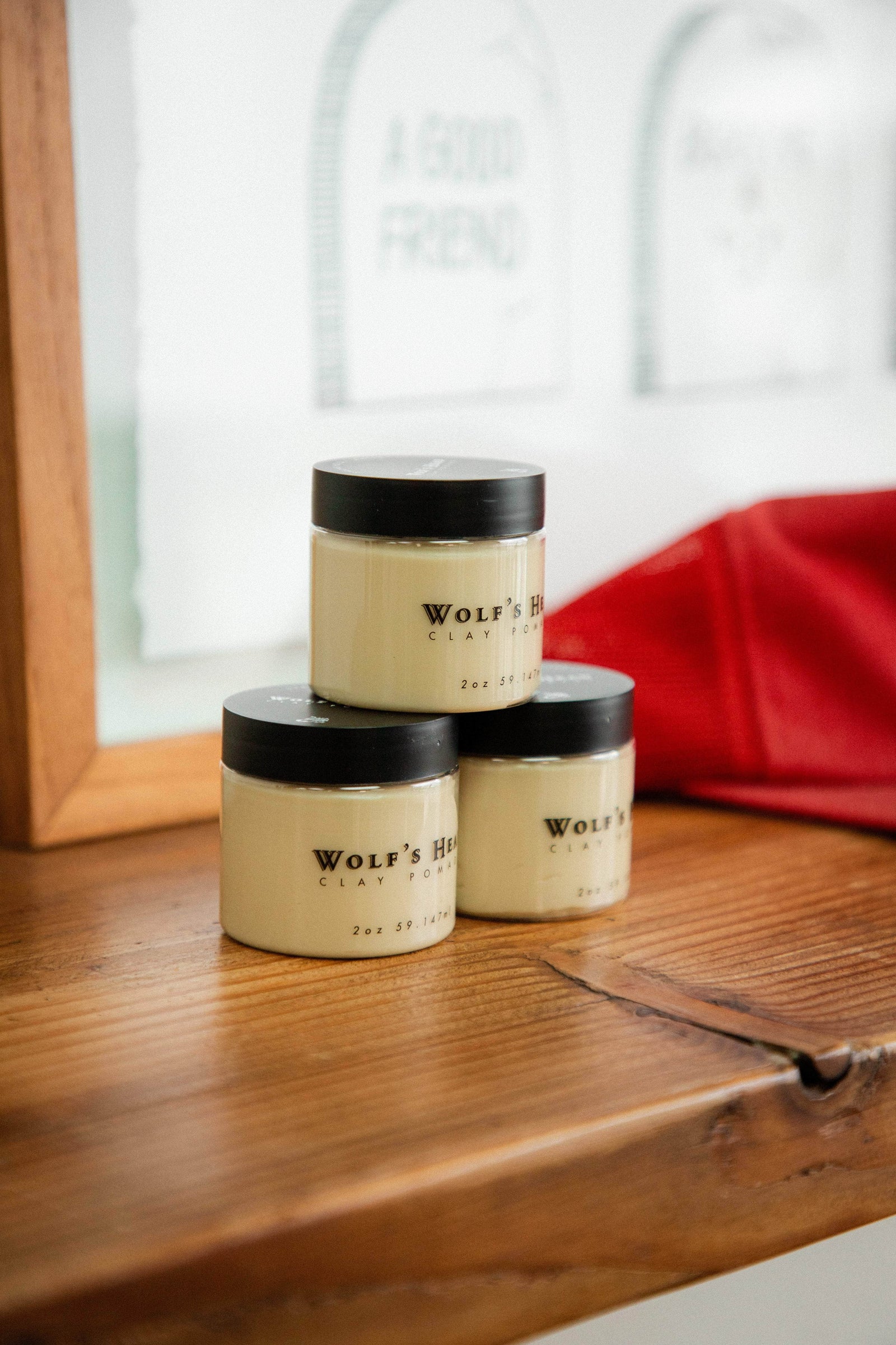Wolf’s Head offers four professional-grade pomades designed to work across different hair types: Our strong hold Clay Pomade, our lightweight Cream Pomade, our Water-Soluble Pomade (a clean, water-based pomade), and our Styling Gel Pomade (an extra strong pomade for the toughest hairstyles).